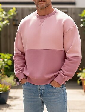 Муж. Толстовка Толстовка с капюшоном и пуловером Абрикосовый Зеленый Вырез под горло Полотняное плетение Пэчворк Цветовые блоки Повседневные Для занятий спортом Праздники