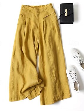 Жен. Брюки из хлопка и льна Нахальный Широкие Чино Отпуск Уличный стиль Классический По щиколотку Нормальная Сплошной цвет Полотняное плетение Карман Эластичный пояс удобный Дышащий Слабоэластичная