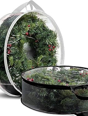 сумка для хранения рождественских венков 24 дюйма - прозрачный пластик из ПВХ для всех видов прочная пластиковая ткань сумка с двойной молнией для праздничных искусственных рождественских венков, 2