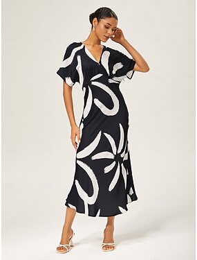 Женское платье макси, черное, белое, с коротким рукавом, абстрактным V-образным вырезом, элегантное, повседневное, для отдыха, весны и лета