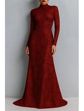 Футляр В пол Выпускные платья Вечернее платье С пышной юбкой Торжественное платье Элегантный стиль Маленькое черное платье Шелковистость Длинный рукав Иллюзионный декор Свадьба Официальные