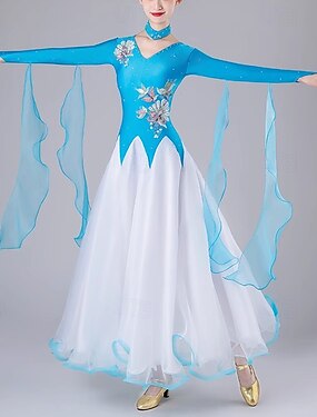 бальные танцы платье для женщин выступление современные танцевальные костюмы длинный рукав конкурс вальс танцевальное платье