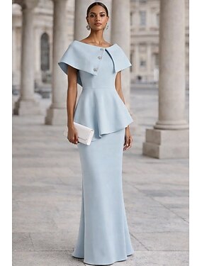Футляр С коротким шлейфом Бальное платье с накидкой Вечернее платье Торжественное платье Элегантный стиль Длинный рукав Вырез-хомут Официальные осень Эластичная ткань с Пуговицы Pазрез