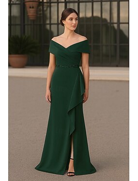 Футляр До щиколотки коктейльные платья Платья для вечеринок Элегантный стиль Мама Боковой разрез С короткими рукавами Вырез под горло Свадьба Официальные Стретч-креп с Shouder Flower