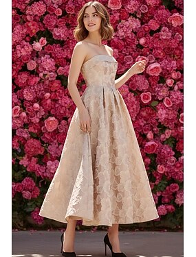 А-силуэт До щиколотки Платье для вечеринки Коктейльные платья Свадебное платье для гостей Платье для матери невесты Без рукавов Без бретелей Элегантный стиль