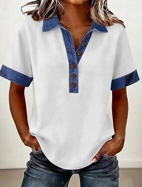 Жен. Туника Винтаж Стиль С короткими рукавами Обычные топы Повседневные Праздники На выход Синий Черный Белый Желтый Розовый Лето Весна