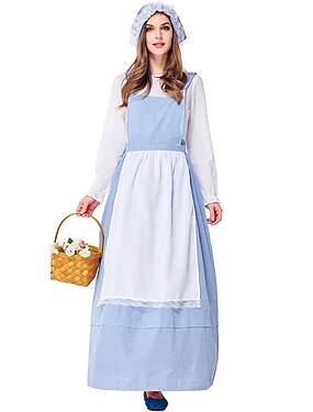 250-летие США 19-го века Инвентарь Платье прерий Пионерка Колониальный Война за независимость Маскарадный костюм Жен. Карнавал Маскарад 4 июля Взрослые Платье Фартук Головная повязка
