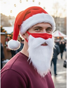 Мужской рождественский комплект из шапки Санты и маски с бородой, красная плюшевая шапка с белым мехом, удобная маска для лица, аксессуар для праздничного костюма для рождественских вечеринок и праздничных мероприятий