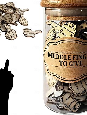 банка среднего пальца, подарок средний палец для подарка, средний палец 100 шт. в банке, кусок деревянного выреза с узором для плохого настроения, поддельная сумка для поделок своими руками, подарки