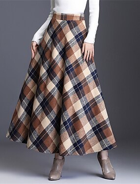 Жен. Элегантный стиль Ретро Макси Завышенная Подол В клетку Контрастных цветов Карман Длиные Слабоэластичная Повседневные На каждый день Синий Красный Зеленый Хаки Осень 100% полиэстер