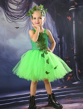 Дети Девочки Платье Платье для вечеринки Лист Детский костюм ведьмы Хэллоуин обычай Без рукавов Выступление Особые случаи Сетка Элегантный стиль Мода Красивый Полиэстер До колена