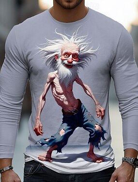 Муж. Смешной Пожилой человек Футболка Длинный рукав Футболка 3D печать Вырез под горло Рубашка Мода Классический Для улицы Повседневные Хизер Грей Цвет хаки Серый Лето Весна Одежда S M L XL XXL XXXL