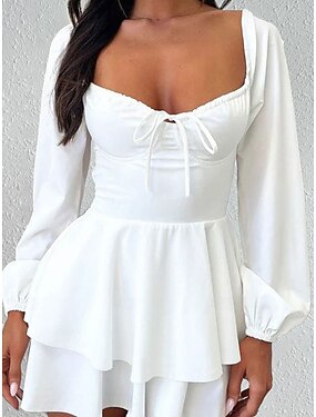 Жен. Мини-платье Белое платье Повседневное платье Мода горячий Современное на открытом воздухе Для вечеринок На выход Стандартный Полотняное плетение Длинный рукав Квадратный вырез