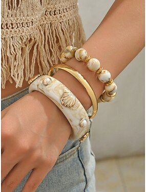 Женский богемный набор из 3 акриловых браслетов, эластичные, которые можно носить в несколько рядов, идеально подходят для пляжного отдыха, повседневной носки и летних аксессуаров.