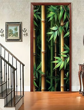 Реалистичная 3D зеленая бамбуковая дверная занавеска в японском стиле дзен, подвесной баннер, экран для обеспечения приватности, декор для дома, офиса и студии.