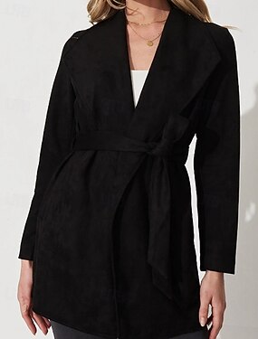 Жен. Блейзер Удобный галстук спереди Мода Полотняное плетение на открытом воздухе Для вечеринок Вечеринка / ужин Повседневные Короткая Обычная Отложной Стандартный Длинный рукав Верхняя одежда