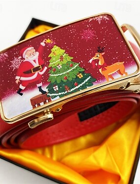 Муж. Рождественский пояс ремень Автоматическая пряжка Быстрый выпуск Кожа PU Сплав Прочный Регулируется Дед Мороз Новогодняя ёлка Винно-красный Красный на открытом воздухе Рождественская вечеринка