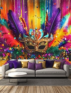 Вторник на масляной неделе гобелен Плакаты Одеяло Маски Перо Роскошь Цветной Современное Вечеринка Гостиная Фоны для съемки Маскарад Домашний декор