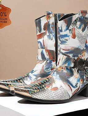 Мужские белые и разноцветные ковбойские сапоги из натуральной кожи с художественным принтом – смелая обувь для повседневных и праздничных случаев