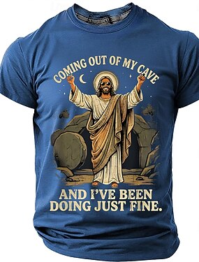Мужская Библия Выходя Из Моей Пещеры И Я Чувствую Себя Прекрасно Иисус Воскресение Забавный Мем Юмор Христианская Футболка Графическая Повседневная Короткий Рукав Церковный Подарок Дизайнерская