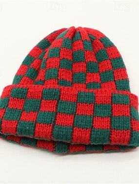 Муж. Универсальные Шапка-бини Зимние шапки Шапки бини 骷髅头毛线帽 Вязаная шапка Красный Синий Акриловые волокна Трикотаж Мода На каждый день Уютный На каждый день Свидание В клетку Теплый