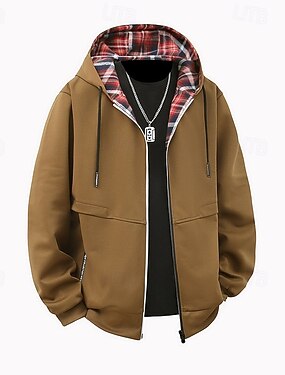 Муж. Толстовка Толстовка с капюшоном на молнии Винно-красный Черный Коричневый Хаки Светло-серый Капюшон Полотняное плетение Пэчворк Для занятий спортом Повседневные Праздники