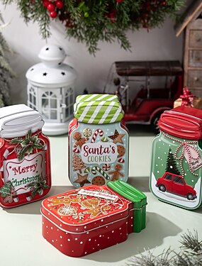 Рождественские жестяные банки для печенья с крышками для подарков, рождественские жестяные контейнеры с дизайном машин и пряников, металлические праздничные коробки для конфет, украшения для