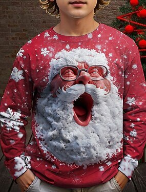 Новогодняя тематика Мальчики 3D Графика Дед Мороз В снежинку Толстовка Длинный рукав Весна Осень Мода Классический Дети 4-12 лет Вырез под горло на открытом воздухе Повседневные Стандартный