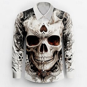 Муж. Черепа Кнопка рубашка Длинный рукав Мода Повседневная Темный Вечерние наряды Для улицы Повседневные Осень Зима Весна лето Рубашечный воротник Кнопка вверх 3D печать Белый