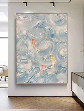 ручная роспись плавающие рыбы картина маслом на холсте очень большая картина с животными ручная работа настенное искусство абстрактное искусство рыбы на заказ картина минималистское украшение для
