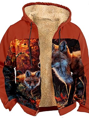 Муж. Лиса Волк Флис Толстовка Жакет Мода Круто Повседневные Винтаж Ретро Капюшон на открытом воздухе Для охоты Черный Коричневый Коричневый 2 Молния Карман Осень Зима Дизайнер S M L XL XXL XXXL