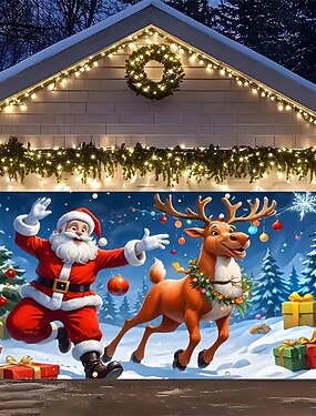 Новогодняя тематика Крышка гаражной двери Большое Подвесное Санта Клаус Симпатичные Стиль 3D Вечеринка На открытом воздухе Праздник Фоны для съемки Ярд (0,9 м) Домашний декор