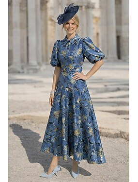 А-силуэт До щиколотки Ниже колена Свадебное платье для гостей Вечернее платье Платье для матери невесты С короткими рукавами Рукав до локтя Рубашечный воротник Элегантный стиль Винтаж Простой