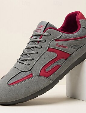 Мужские легкие повседневные кроссовки на шнуровке серого и красного цвета, спортивная обувь для бега, ходьбы, повседневной носки и уличного стиля.