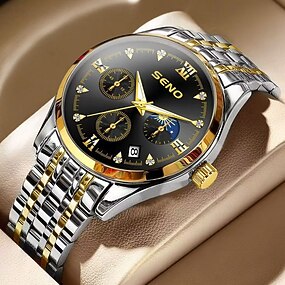 Мужские роскошные часы, двухцветный хронограф из нержавеющей стали с индикацией фаз Луны и даты, водонепроницаемые, светящиеся аналоговые кварцевые деловые наручные часы, классический модный подарок