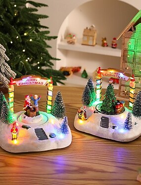 1 шт. 19 * 16 см рождественская музыкальная шкатулка из смолы, украшение в виде рождественского домика в европейском стиле, снежный домик, Санта-Клаус, рождественская елка, музыкальная светодиодная