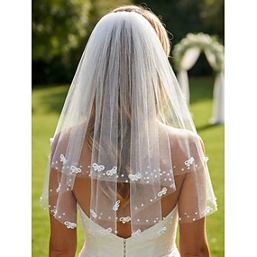 Женская свадебная фата из полиэстерового тюля с украшениями в виде бабочек и жемчуга, элегантный многослойный дизайн, легкая и мягкая, идеально подходит для невест, свадеб, приемов и торжественных мероприятий.