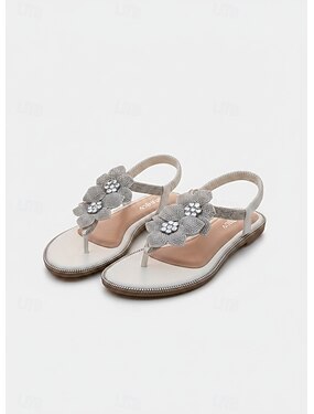 женские бежевые босоножки на плоской подошве с цветочным узором и стразами – элегантная свадебная обувь в стиле бохо для невест, пляжных церемоний и летних путешествий