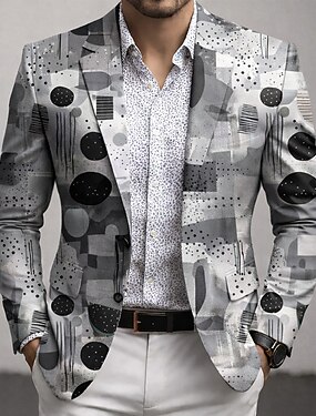Муж. геометрический Пиджак Пальто Мода Удобный Дышащий Художественный На каждый день Повседневные Вечерние наряды 3D печать Пуговицы Мульти карман Весна Наступила зима Плоский воротник Длинный рукав