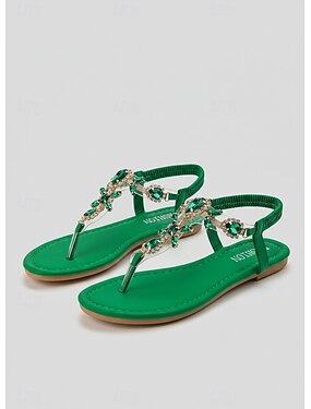 женские зеленые босоножки с Т-образным ремешком, украшенные стразами, с эластичным ремешком на щиколотке – элегантная летняя обувь для пляжа, вечеринок или повседневной носки