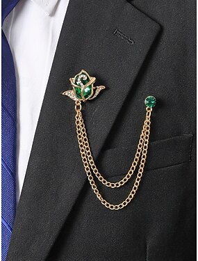 Мужская брошь в виде розы из сплава с цепочкой, аксессуар для свадебного и вечернего костюма, различные цвета, элегантная цветочная брошь для торжественных случаев.