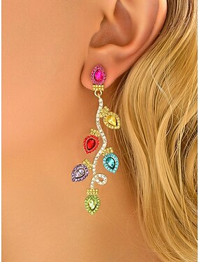 Женские рождественские серьги-подвески из сплава, разноцветные серьги-подвески со стразами и разноцветными камнями, элегантный подарок на праздничную вечеринку для женщин