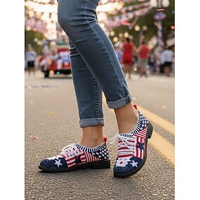 Женские синие патриотические слипоны – легкие, дышащие прогулочные туфли с американским флагом и графическим дизайном, посвященным 250-летию США, идеально подходят для повседневной носки, праздников,