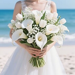 Набор из 32 изысканных искусственных тюльпанов и калл (белая гипсофила) – реалистичные белоснежные цветы для свадебных букетов, помолвок, украшения дома и офиса, Дня матери и весны.