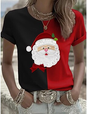 Рождество Женщины Футболка Графика Санта Винтаж Стильный Современный Короткий Рукав Круглый Вырез Обычные Топы Повседневная Печать Черный Красный Зеленый Осень Зима