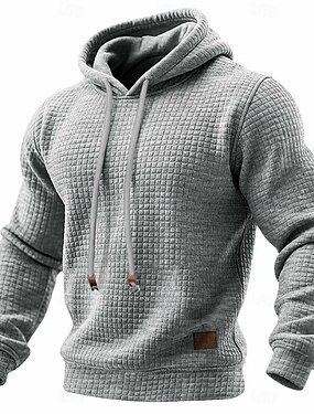 Муж. Толстовка Толстовки с вафельным принтом Толстовка с капюшоном и пуловером Абрикосовый Черный Белый Светло-серый Темно-серый Капюшон Полотняное плетение Текстура
