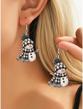 женские рождественские акриловые серьги в виде снеговиков – праздничный дизайн с шарфом и шапкой, идеально подходит для праздничных вечеринок и зимнего ношения