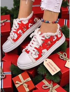женские кеды с принтом Санты на мягкой подкладке — уютный праздничный стиль, идеально подходит для повседневных рождественских образов и праздничных торжеств