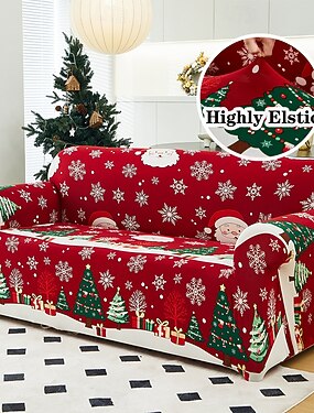 Чехол для дивана с рождественским принтом, пылезащитный, всесильный, эластичный, чехол для дивана из супермягкой ткани с одним бесплатным чехлом (кресло/диванчик/3 места/4 места)