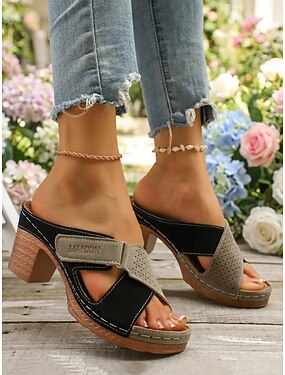 Женские повседневные сандалии на массивном каблуке — мягкий текстурированный верх с ремешком на пряжке, удобные сабо без застежек, обувь в винтажном стиле для работы, прогулок, путешествий и